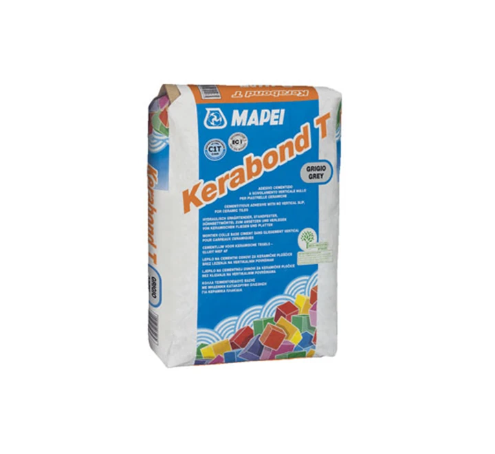 Cementitious adhesive with no vertical slip for ceramic tiles.